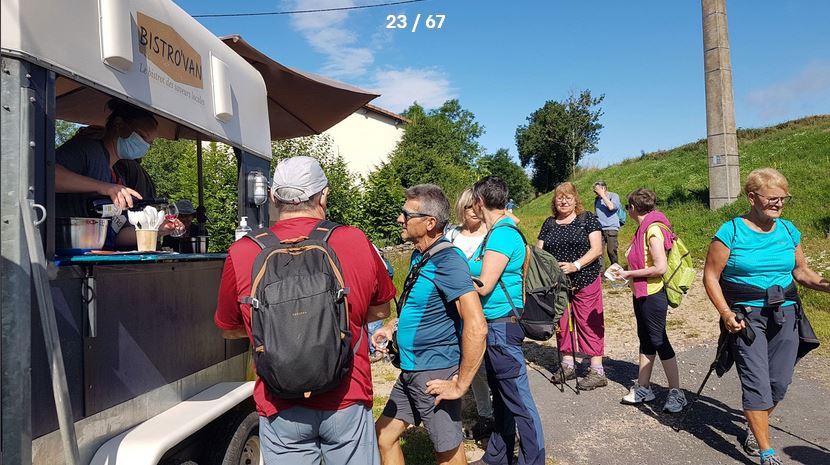 La randonnée gourmande a rencontré un vif succès avec près de 80 participants dont 33 d’Ambertrando (ambertrando.fr). La rando était ouverte à tous, la plus jeune participante avait 4 ans et la plus âgée 90. Les participants ont apprécié les mets et les vins proposés qu’ils ont consommé avec modération, tous les produits proposés avaient une origine locale.