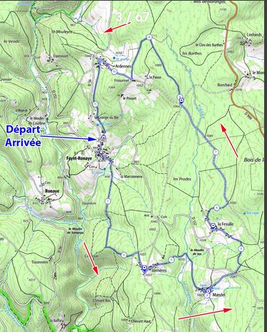 - 11km / 250m dénivelé /pas de raidillons – Départ : Fayet Ronaye – Croix des Chaux – La Fessille – Mandel – Verrières – Fayet Ronaye
